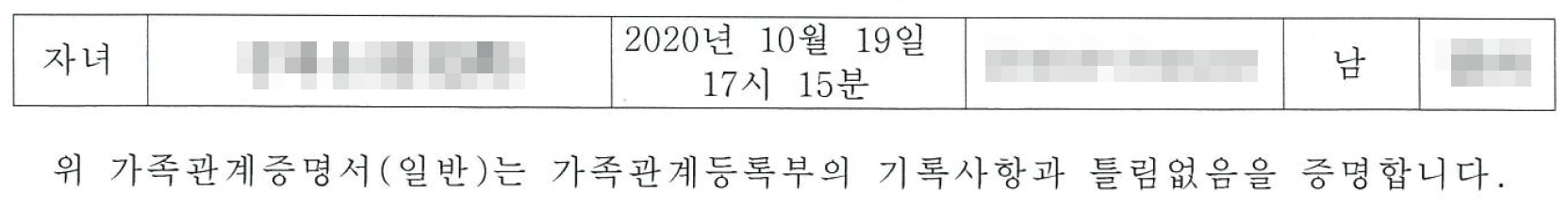 혹시해서 출력해본 가족관계증명서에도 우리 아가가 나온다.