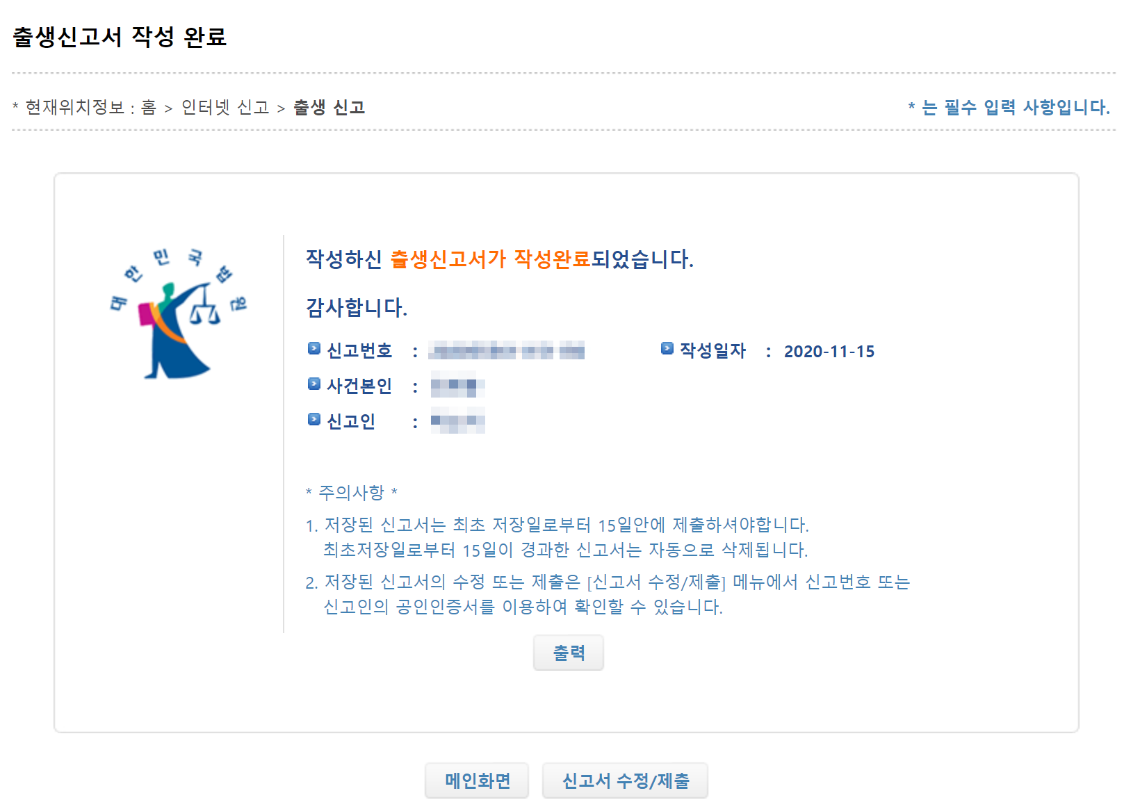 간단하지만.. 책임감이 무겁게 느껴지는 출생신고 완료~!