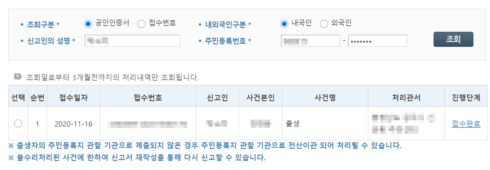 온라인 출생신고를 하니 관할 동사무소에서