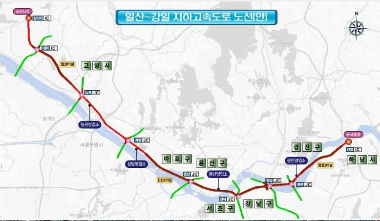 현재 논의 중인 운정 삽다리 IC에서 하남시 강일 IC 까이 지하고속도로가 착공되게 되면 강남권까지 자동차로 20분대 진입이 가능해진다. (이 부분은 논의 중이기에 12월이 되어야 확실히 알 수 있는 부분이다)