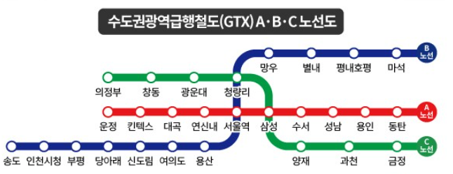 GTX A는 서울역. 삼성역. 수서역 등 대규모 거점지를 경유한다.