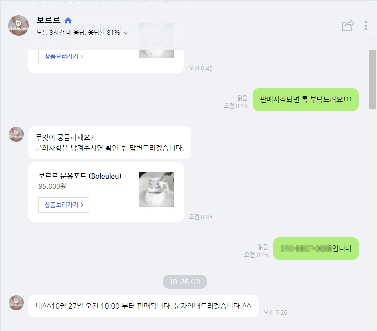 보르르는 품절일 때가 많아서 재고 입고에 맞춰서 구매해야한다.