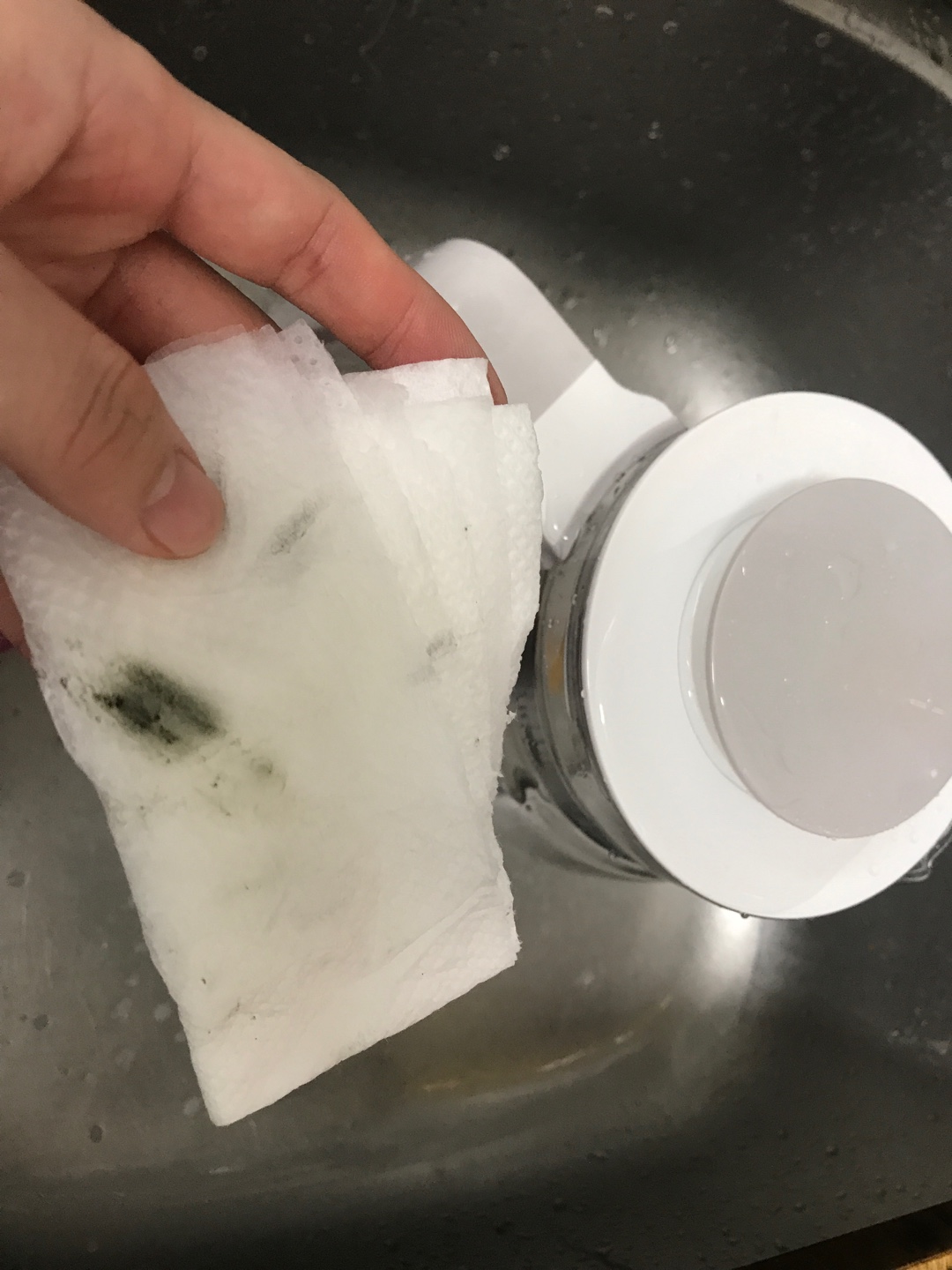 다른 스테인레스 제품에 비해서는 많이 나오진 않은 편이지만, 뚜껑부위에서 연마제가 묻어나왔다.