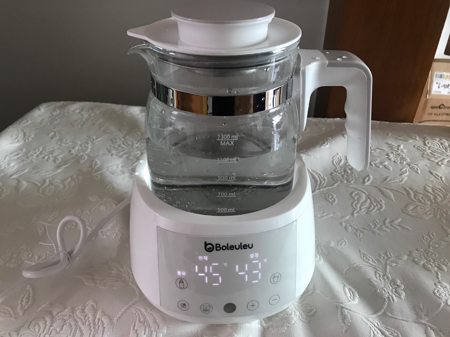 먼저 100도씨 물이 끓고 분유타기 딱 좋은 온도인 기본 설정온도 "43도"에 맞춰서 식혀진다.