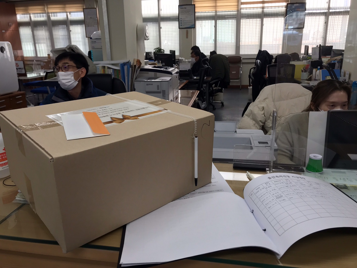 출산선물 받으러 왔다고 하고, 신분증 제출하고 수령대장을 작성하니 ..